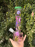 9.75” tall glass beaker with jade green mouth piece that has been customized using: